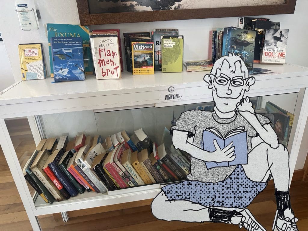 So geht das einige Zeit, bis er endlich mit seinem Boot erfasst ist. Dann sagt der Hafenmeister, er müsse jetzt als Nächstes noch zum Beamten der Küstenwache, um sich dort ebenfalls vorzustellen und anzumelden. Diese Form der Einklarierung innerhalb der EU hatte ich auch nur einmal in Europa, nämlich als wir in Kefalonia/Griechenland von Italien kommend eintrafen. Der Franzose jedenfalls antwortet auf diesen freundlichen Hinweis selbstbewusst: Nein, das müsse er nicht. Bei allen Anwesenden steigt der Stresslevel erneut leicht an. Nur einer lächelt, und das ist der selbstbewusste Polizist, der schon im Raum ist und somit die Wege für das Einklarieren freundlicherweise kurz hält. Ich vertreibe mir die Zeit in der kleinen Bücherei, die man hier betreibt, und übe mich in einer auch von mir zu oft vernachlässigten Tugend: Geduld.