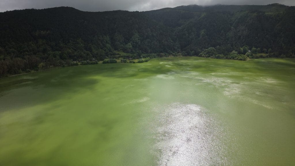 Der vor Algen grün schimmernde Kratersee Lago das Furnas mit seinem entspannten Ufer ist ein Hingucker, wenn auch nicht zum Schwimmen.
