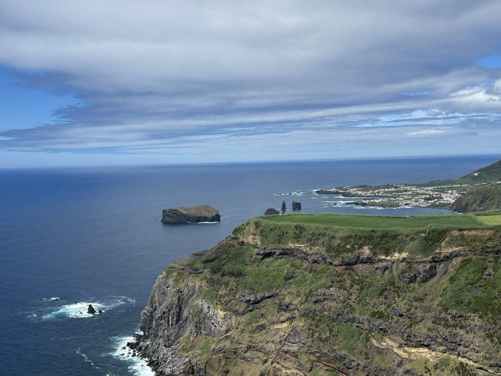 Unser Ausflug im westlichen Inselteil endet am Miradouro Da Ponta Do Escalvado, einer schroffen Steilküste, die durch ihre Höhe von über 220 Metern eine herausragende Aussicht auf das kleine Fischerdorf Mosteiros und die dazugehörige Bucht ermöglicht.