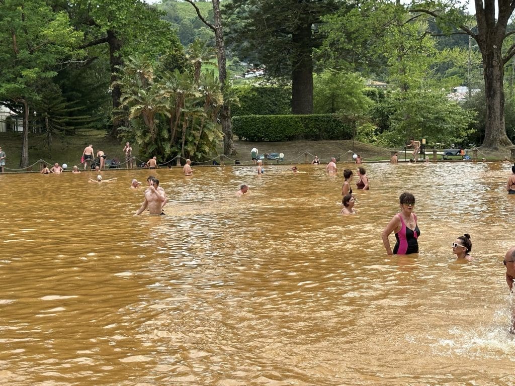 Der Star der Anlage und der Grund unserer Anreise hier ist allerdings das gut besuchte Thermalbad mit seinem braunen, fast 40 °C warmen Wasser, welches wahrscheinlich in keinem Reiseführer und keiner Reportage der Insel fehlt.
