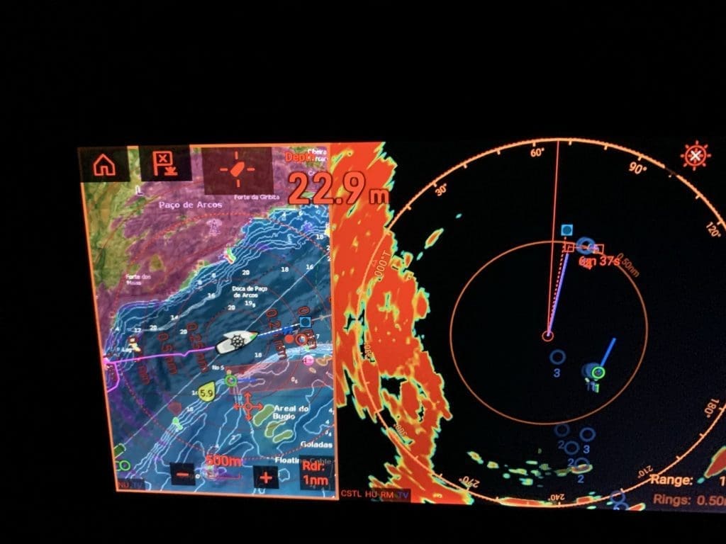 So verlassen wir am 23.11. Lissabon, ohne es wirklich gesehen zu haben. Wir wollen wieder kommen, wenn wir mehr Zeit haben. Die Windvorhersagen sind so, dass wenn wir jetzt nicht fahren, wir es danach unter Umständen die ganze Woche nicht mehr hinbekommen. Wir müssen diese Reise aber zu einem Ende bringen, da wir am ersten Dezemberwochenende zurück nach Hause wollen. Da müssen wir dann beide in Quarantäne und so weiter. Auch haben wir genug von Besichtigungen und Touristenreisen. Wir wollen jetzt ankommen und herunterkommen. Also segeln erneut und ein letztes Mal dieses Jahr über Nacht Richtung Süden, in das Land der Verheißung. Algarve, wir kommen!!!