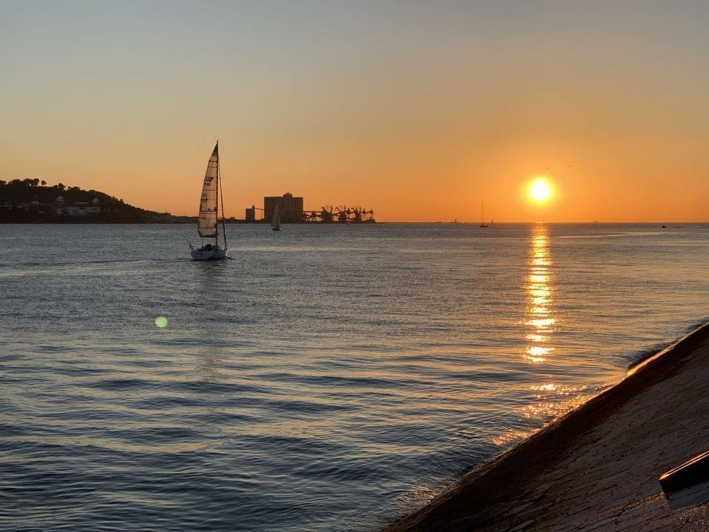 Wir schauen uns ein wenig Lissabon an, aber wirklich Zeit haben wir nicht, bzw nehmen wir uns nicht. Am Wochenende ist Halbtags Ausgangssperre und wir können wenig machen. Mit Marco versuchen wir zumindest den Sonnenuntergang vom Fluss aus zu verfolgen, werden aber von der Polizei sofort wieder in den Hafen geschickt.