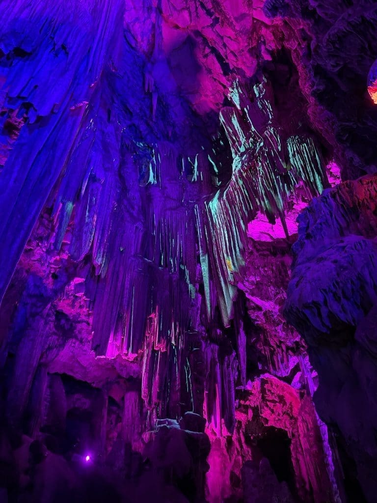 In der Höhle gibt es ein kleines Theater, für zum Beispiel Konzerte. Wir bekommen ein kitschiges und kurzes Diaschauspiel geboten, das an die Wände projektiert wird.