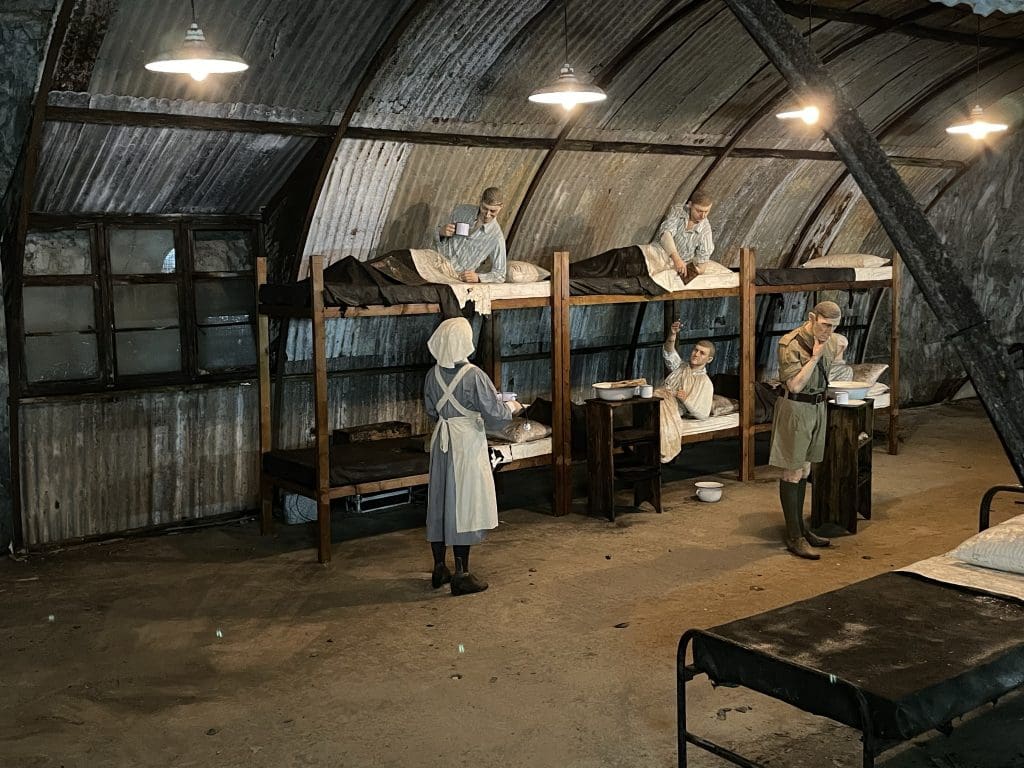 Im letzten Bild sieht man eine Wellblechkonstruktion, die man in den Felsen baute, um das darin befindliche Krankenhaus nicht im nackten Felsen zu errichten. In das Wellblech ließ man ein Fenster ein. Das hatte natürlich keine Funktion. Dahinter war schließlich nur Felsen. Es beruhigte aber die teilweise klaustrophobischen Patienten, da es half sich vorzustellen, man könnte es einfach öffnen und auf eine weite Wiese blicken.