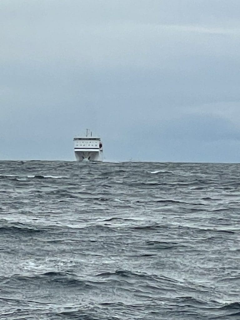 Ich bin dann sehr damit beschäftigt, auf den Verkehr zu achten. Von hinten kommt die Schnellfähre, von draußen kommen andere Schiffe rein und in der Straße geht der quer laufende Verkehr. Außerdem kündigt sich mal wieder Regen an.