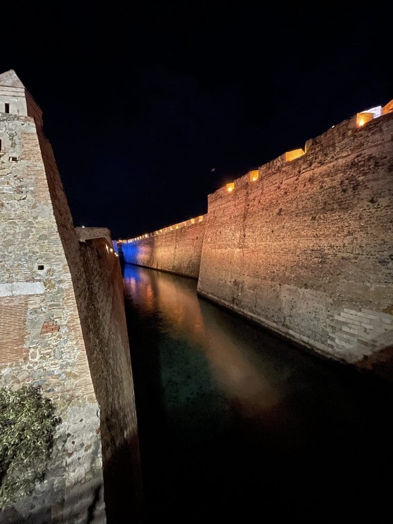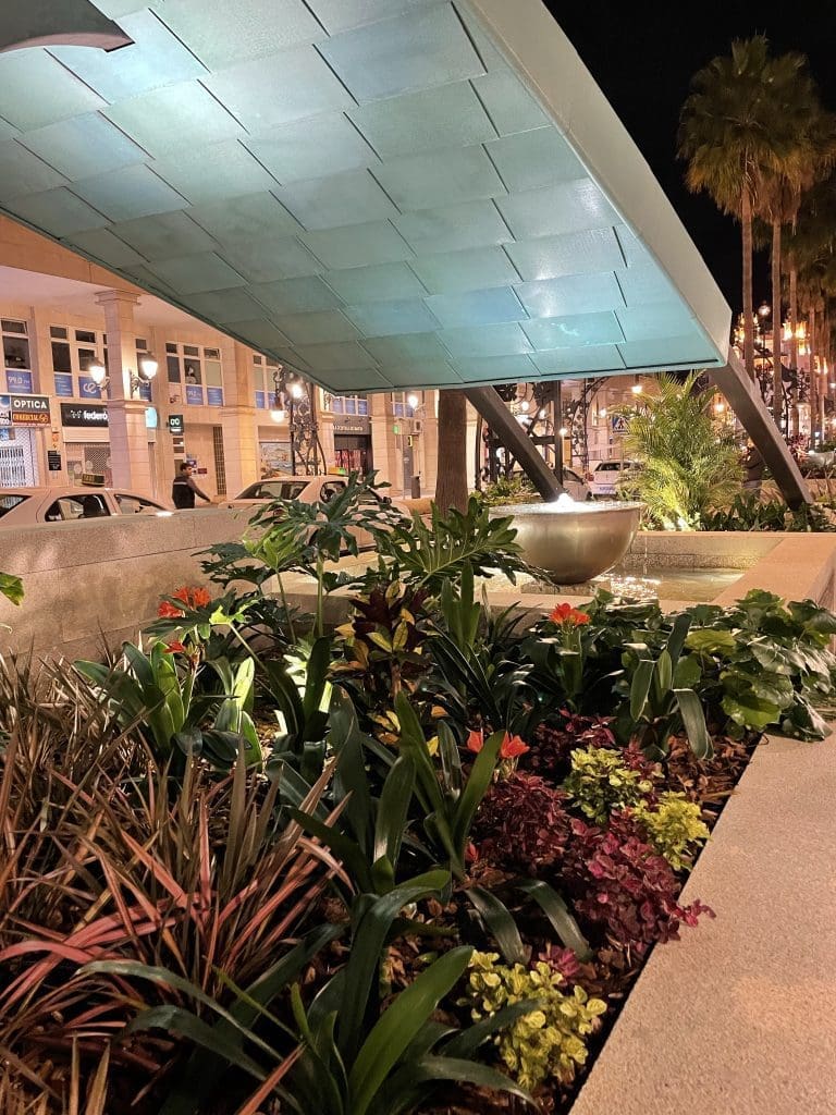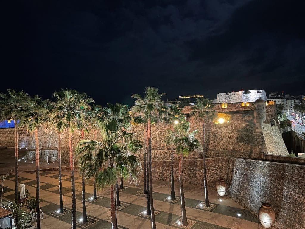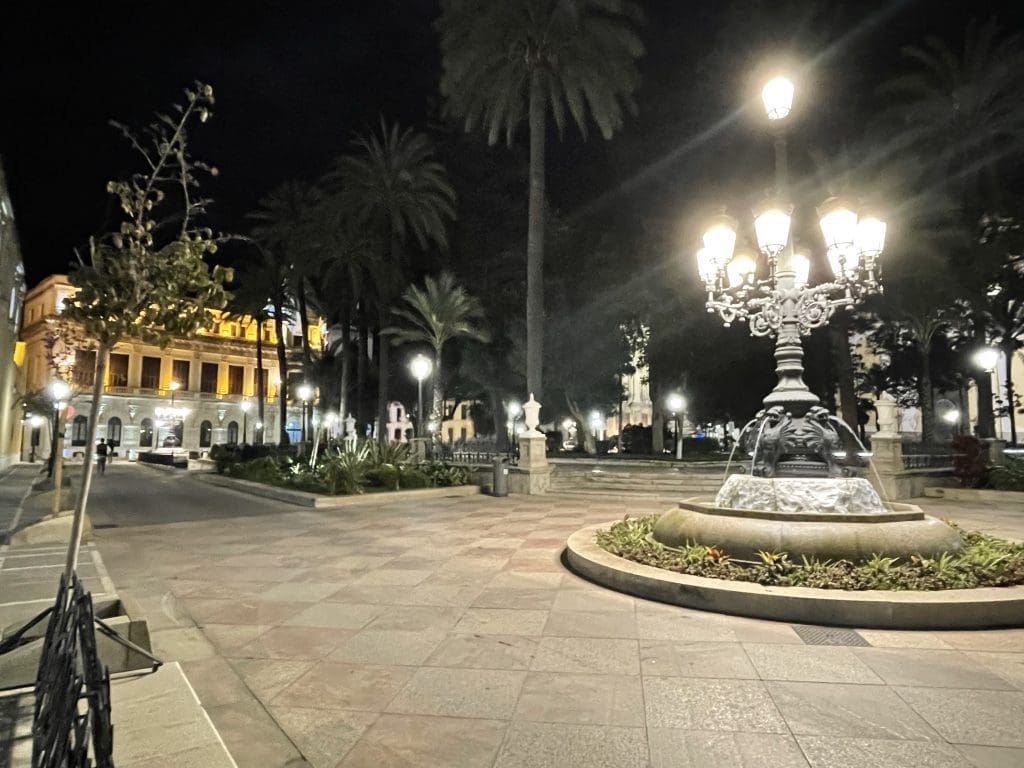 Irgendwie ist hier die Atmosphäre aber komisch. Zwar ist alles besonders prächtig herausgemacht, die Festung ist imposant, die Fassaden renoviert und schön beleuchtet, aber das echte Leben kann da nicht mithalten, das Ganze ist im Detail nicht stimmig. Wenn man in einer vermögenden Stadt einen Prachtplatz sieht, dann Grenzen daran edle Restaurants und meinetwegen teure Boutiquen, alles ist auf einem Niveau. Hier aber sind die Restaurants eher bodenständige Tappasbars, gut bürgerlich und manchmal etwas schäbig, Dönerbuden, Ramschläden, die man genauso gegenüber im armen La Linea sieht. Zwar gibt es auch hier die tolle Fußgängerzone mit Ketten wie Zara etc., aber wir können uns unabhängig voneinander nicht helfen. Wir empfinden es so, dass man hier mit viel mit öffentlichem Geld einiges macht, das aber nicht aus dem Ort selbst zu kommen scheint, wodurch sich ein Gefälle ergibt, das man sehen kann. Man kann das aber auch ignorieren und sich dem Ort so hingeben, wie er sein will und bekommt eine spannende Kulisse geboten.