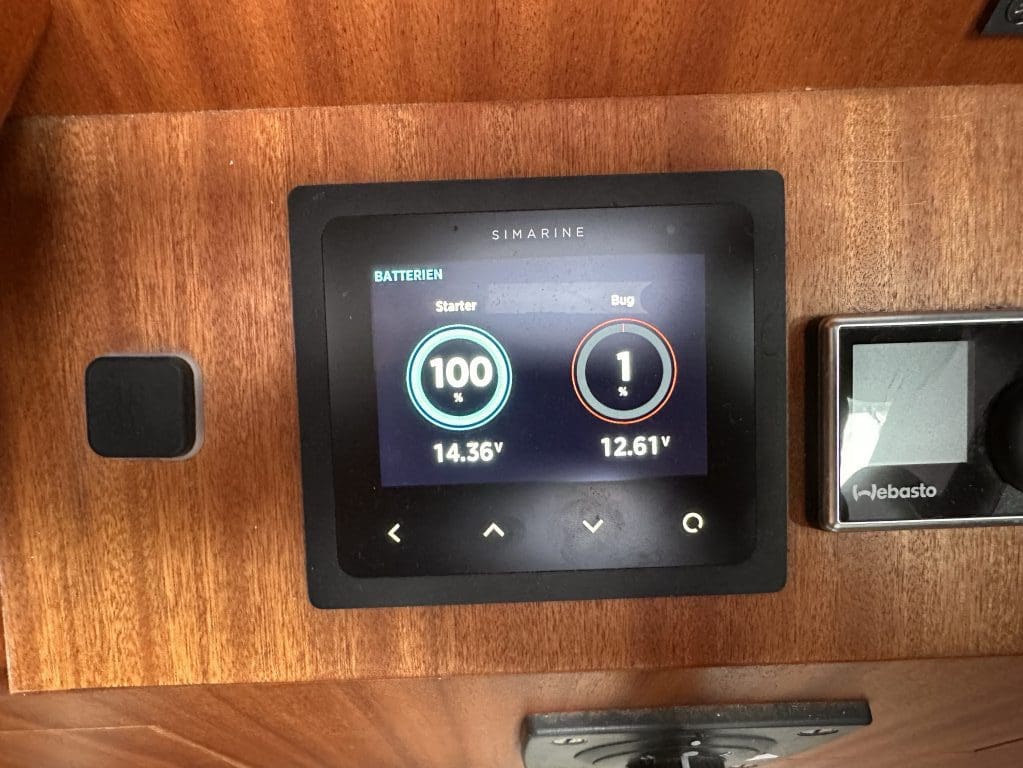 Ich Trottel hatte offenbar die Bugbatterie angelassen, die mir diese Sünde mit 1 % Restkapazität quittiert. Eine AGM Batterie nimmt so etwas extrem übel.