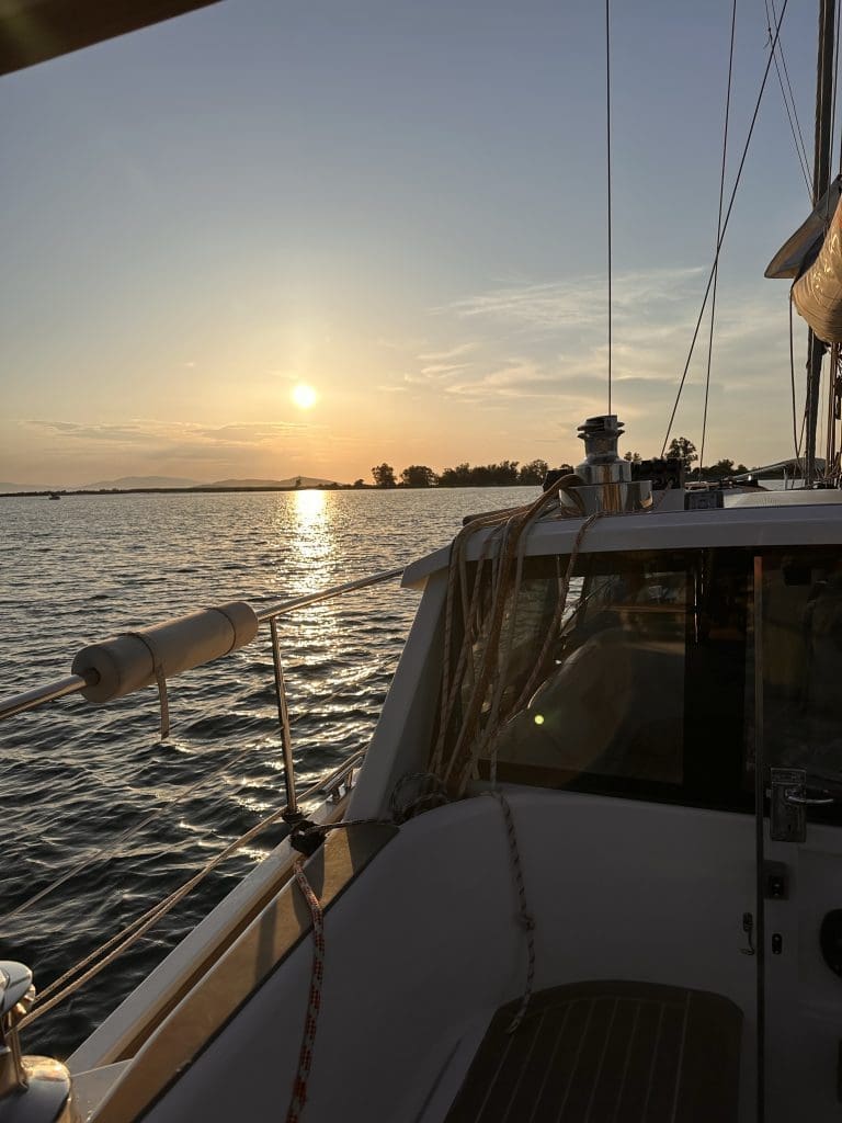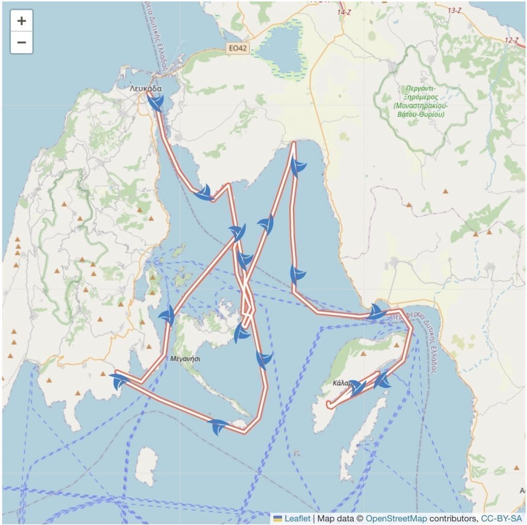 So endet am nächsten Tag, am 31.5.2023 meine Zeit im ionischen Meer. Mathias und Isabel brechen nach Westen auf, ich nach Süden Richtung Kanal von Korinth, der am morgigen Tage für Freizeitboote in der Sommersaison öffnet und anschließend den Berg hinauf nach Thessaloniki, wenn es denn gegen den Wind geht.