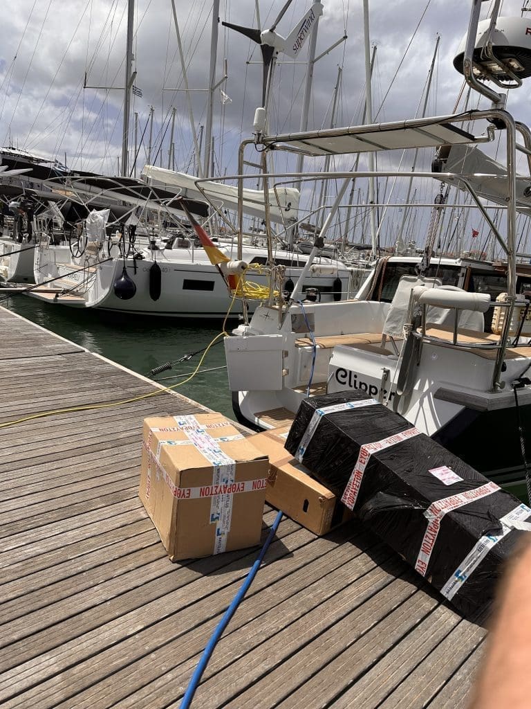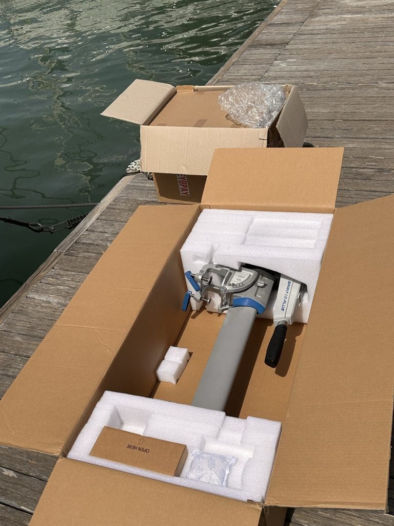 Was ebenfalls ankommt, ist ein neuer Außenborder von ePropulsion für das Clipperchen. Ich war es nun endgültig leid, jedes Mal den schweren Torqeedo Cruise inklusive Monsterbatterie aufzubauen, wenn man mal das Clipperchen benutzen wollte. Alles zusammen eine nette Ansammlung an Kartons, die da jetzt auf der Pier liegen.