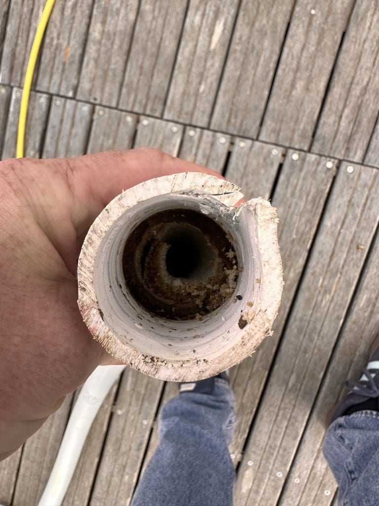 Dann gehen sie an die deutlich delikatere Aufgabe, den Schlauch, der von der Toilette zum Schwarzwassertank führt, zu tauschen. Mir ist aufgefallen, dass die hier eingebrachten Substanzen immer länger benötigen, bis sie vom System ordnungsgemäß entsorgt werden. Die Kombination von Salzwasser und den, dem System zur Zwischenlagerung und anschließendem Weitertransport übergebenen Stoffen, legt sich ganz gerne an den Wänden des Schlauches und im Tank ab. Ist der Schlauch mal dicht, kann die Toilette ihre entgegennehmende Aufgabe nur noch einmal halb, ohne Weitertransport und unter erheblichen Konsequenzen für das weitere Raumklima ausführen. Alternativ gäbe es da noch einen Eimer, im Fachjargon Pütz genannt, den ich mir aber ganz gerne für andere Dinge vorbehalten würde.