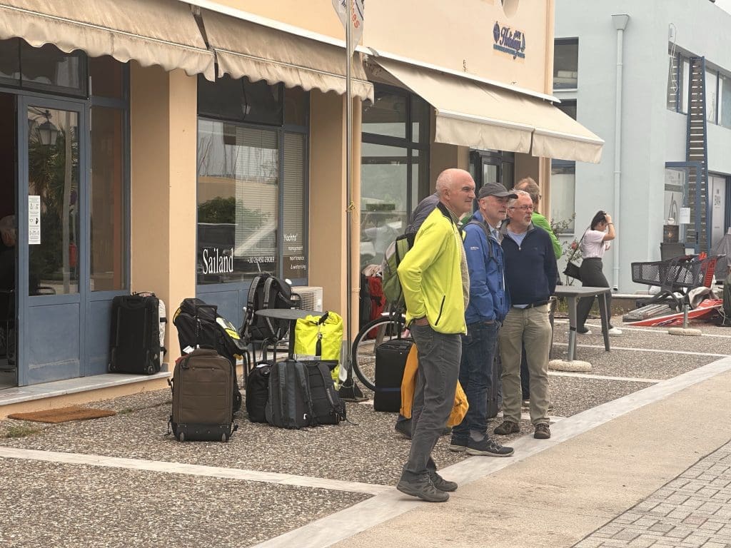 Am Samstag ist aber auch Crewwechsel der Charterboote, deren Saison gerade beginnt. Ein ungewöhnliches Bild, wenn man die ruhige Winterroutine gewohnt ist. Überall stehen auf einmal Grüppchen mit ihrem Gepäck, palavern und warten auf ihr Boot.