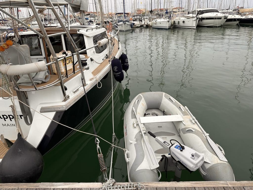 Der Austausch der elektronischen Außenbordmotoren war an sich ein großes Drama. Die Kurzversion ist, dass ePropulsion keinen Spediteur fand, um die Lithiumionenbatterie (Gefahrgut) nach Griechenland zu transportieren und ich keinen Spediteur oder Integrator für den riesigen Batterieblock des Torqueedo nach Deutschland ausfindig machen konnte. Tage gingen über die Suche ins Land. Die Lösung war dann, dass es in Athen einen Onlinehändler für den neuen ePropulsion gibt, der das ganz problemlos anliefern konnte, von dem aber ePropulsion Deutschland offenbar nichts wusste. Torqeedo wiederum hat ein weltweites Servicenetz, über das sie mir die originalen Leerkartons nach Lefkada schickten, in die ich das ganze nun verpacken und zur Abholung für deren Nischenspediteur bereit stellen soll.