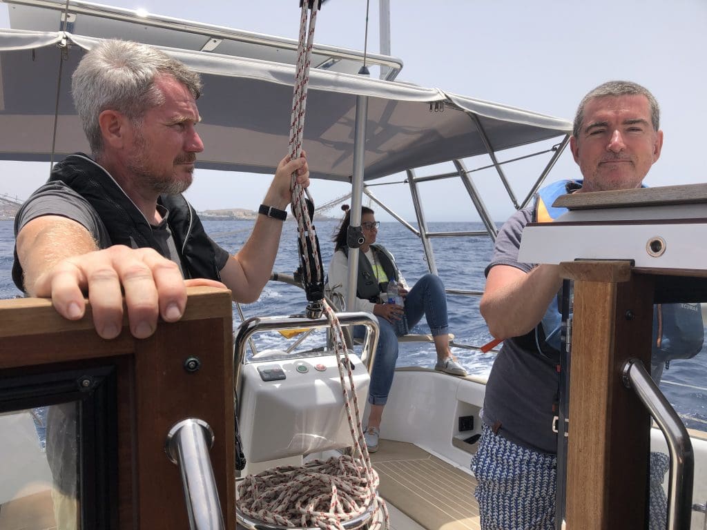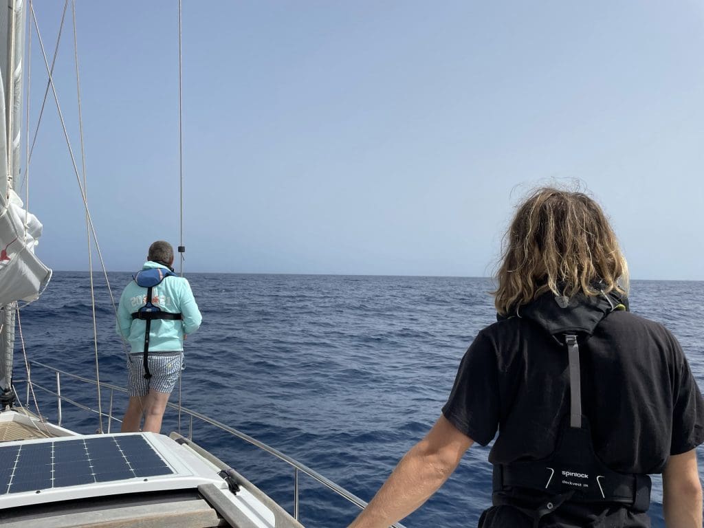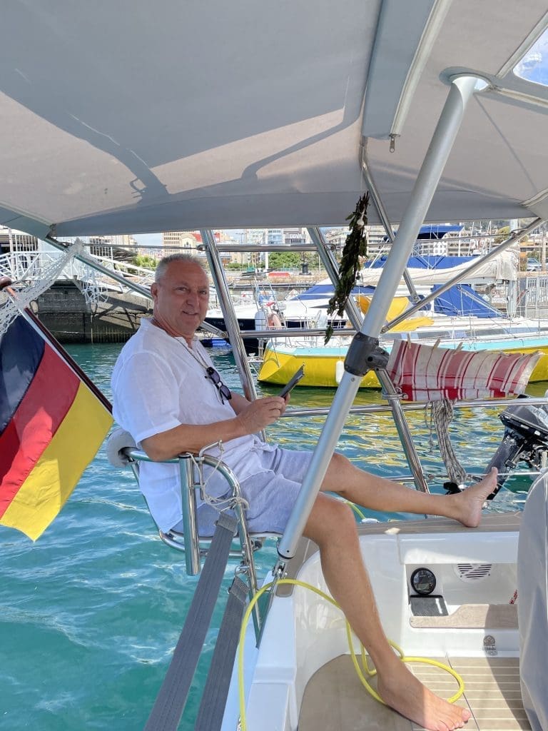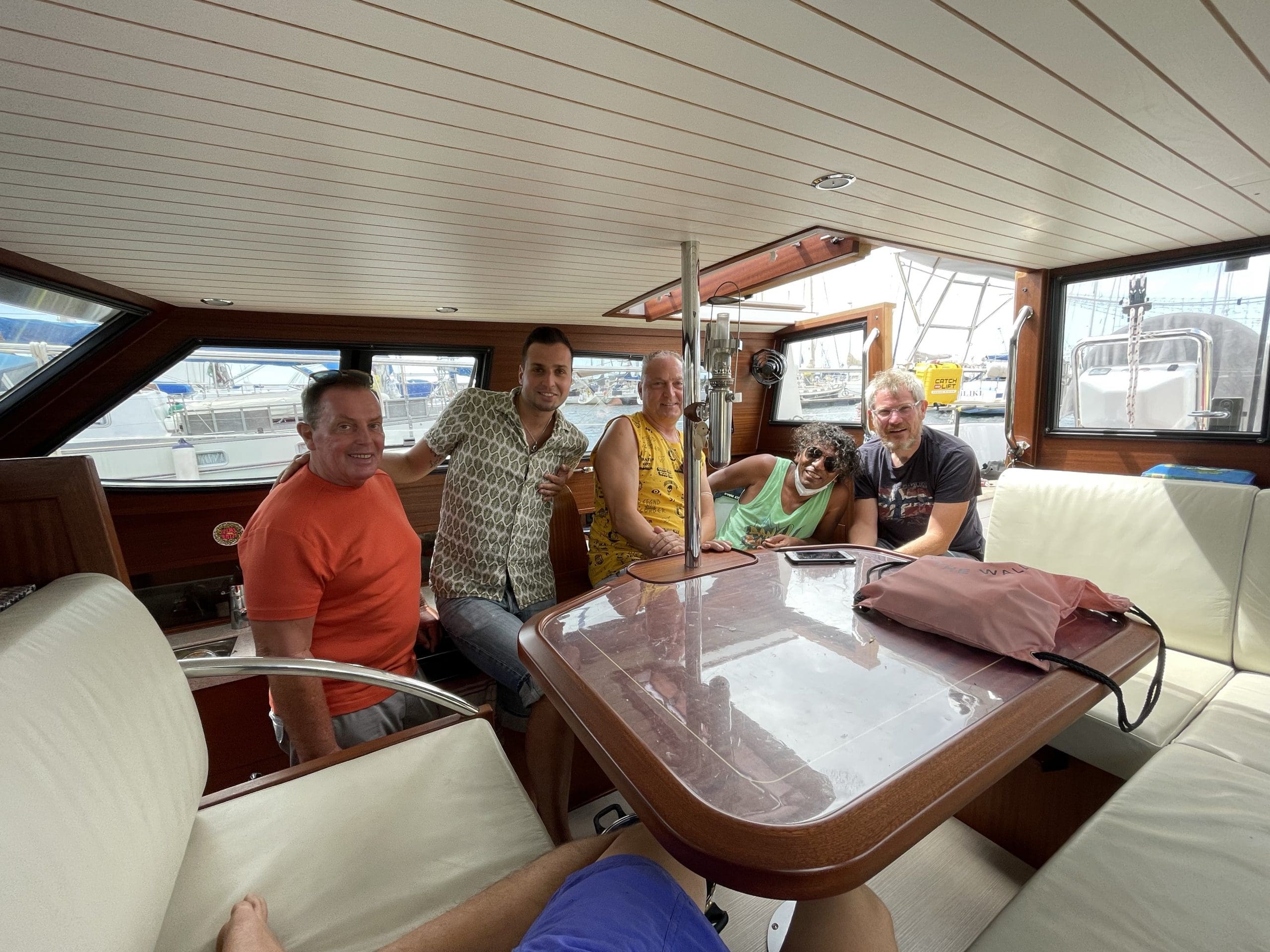 Nicht so schlimm. Ich gehe mit meiner neuen Crew auf Zeit kurz durchs Boot, erkläre die Toilette und mache eine kleine Sicherheitseinweisung, dass man selbständig bei Bedarf Hilfe rufen kann und wir passen die Schwimmwesten an. Anschließend erkläre ich die Wetterlage, die lokalen Besonderheiten und die Route.