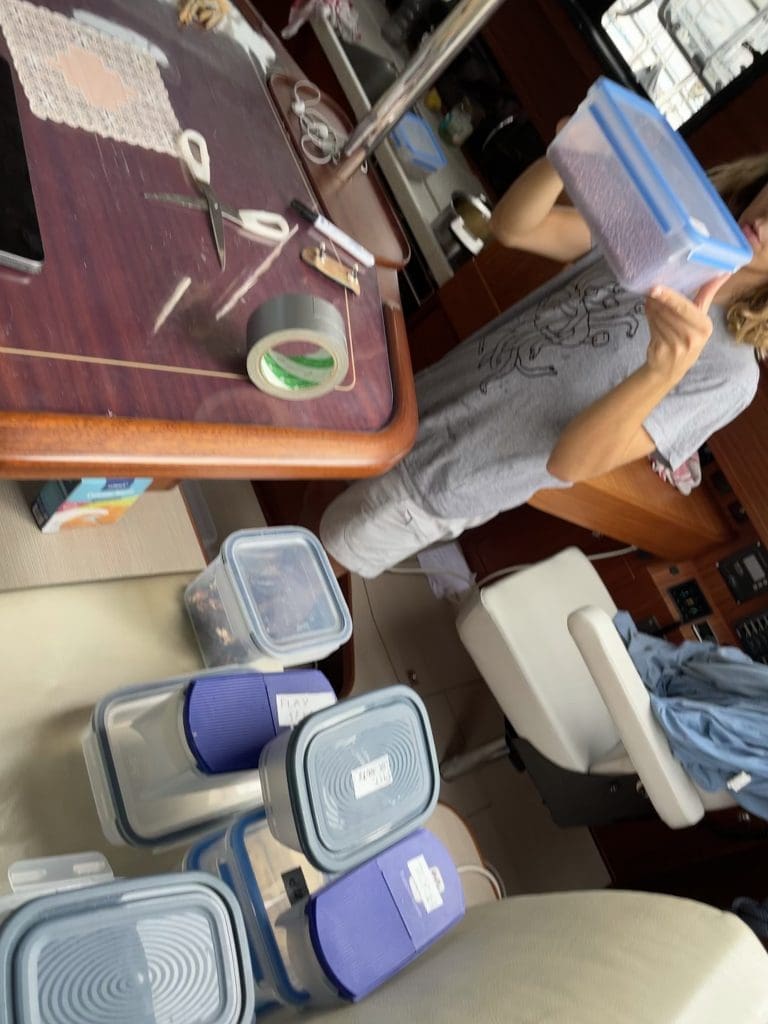 Danach hatte ich das Boot relativ schnell seeklar. Nur Filip benötigte noch deutlich über eine Stunde, bis seine zum Färben vorbereiteten Stoffe gereinigt, zum Trocknen aufgegangen und andere 1.000 Sachen verstaut waren, die er an und unter Deck die letzten Tage zur Verwendung bereitgelegt hatte.