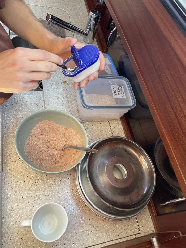 Der Optimierungsvorschlag durchläuft einen kritischen Validierungsprozess. Da die Kosten-Nutzen-Rechnung vernünftig und plausibel erscheint, stehen wir bald in der Pantry und bereiteten unter Blaues-Meer-und-Sonne-Panorama einen Schokoladen-Bananenkuchen für das Nachmittagsprogramm vor. Da kein Internet vorhanden ist, wird es pure Improvisation. Lecker!