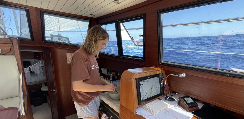 Das nenne ich mal repräsentabel. Wir genießen den Tag in See aus vollen Zügen. Mittags schaue ich noch mal mit dem neuen Wetter, wie weit der Wind in den kommenden 10 Stunden noch recht drehen wird. Das passt für uns wunderbar, ich setzte einen neuen Wegpunkt und mit einem leichten Knick fahren wir jetzt direkt auf unser Ziel zu. Viel mehr dürfte navigatorisch nicht mehr passieren. Den Rest macht der Autopilot.