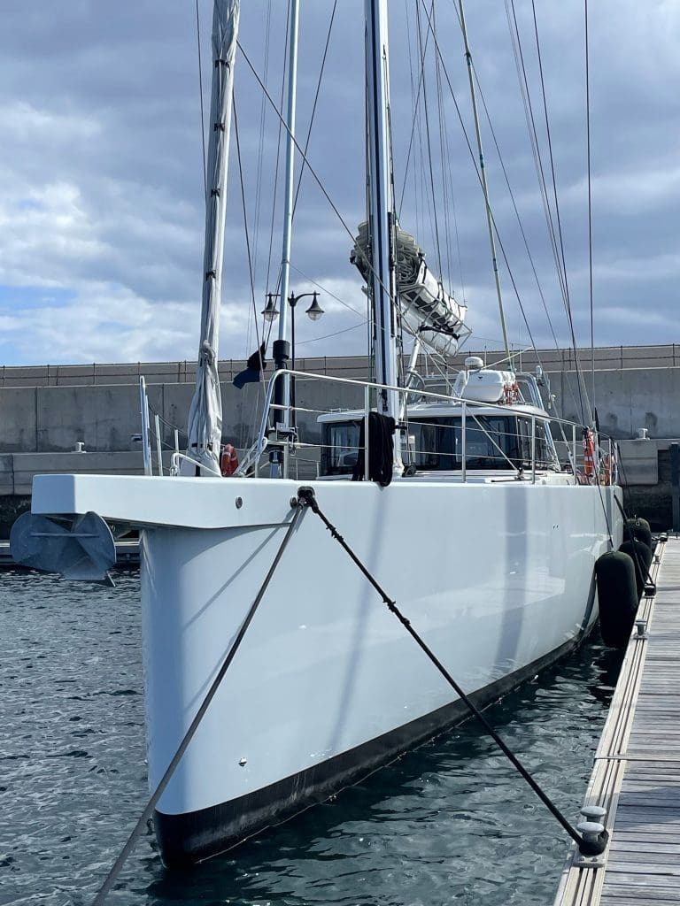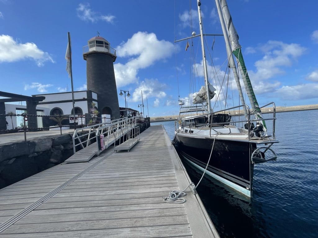 Mit diesen weltbewegenden Gedanken und dem Schauen einiger aufgezeichneten YouTube Videos geht es weiter durch die Nacht, bis ich gegen 6 Uhr morgens Filip wecke. Wir stehen kurz vor dem Hafen, nehmen zusammen die Segel weg und bringen Leinen UND Fender an. Marina Rubicon! Das war der Hafen mit dem schwungvoll – schönen Anleger ohne Fender. Die Kratzer von dem Manöver möchte ich zusammen mit allen anderen in Lagos entfernen lassen.