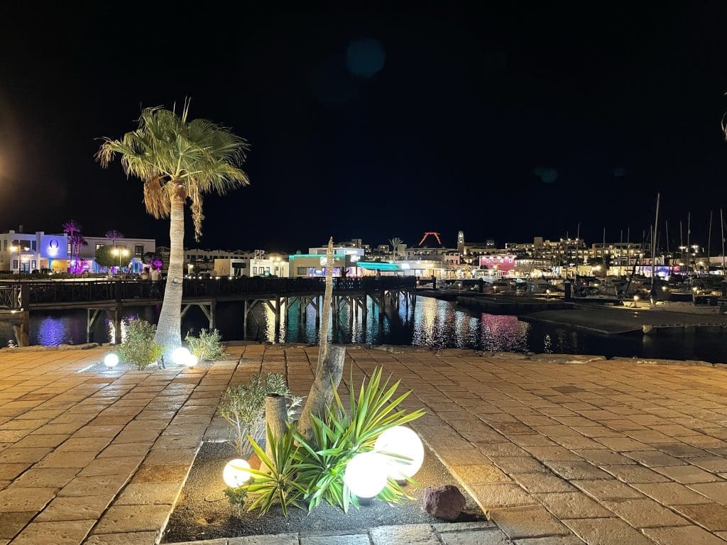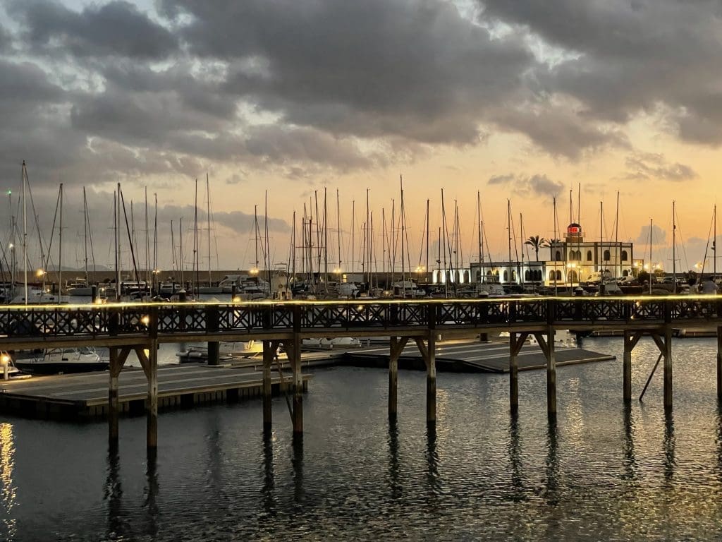 Auf dem Weg zurück auf das Boot zeigt die Marina Rubicon noch mal, was sie abends kann. Es ist mal ganz schön.