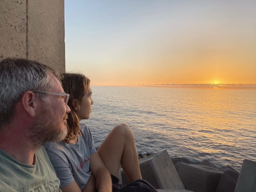 Abends zelebrieren wir hier die schönen Sonnenuntergänge, vom brutalistischen Bollwerk aus. Romantisch!