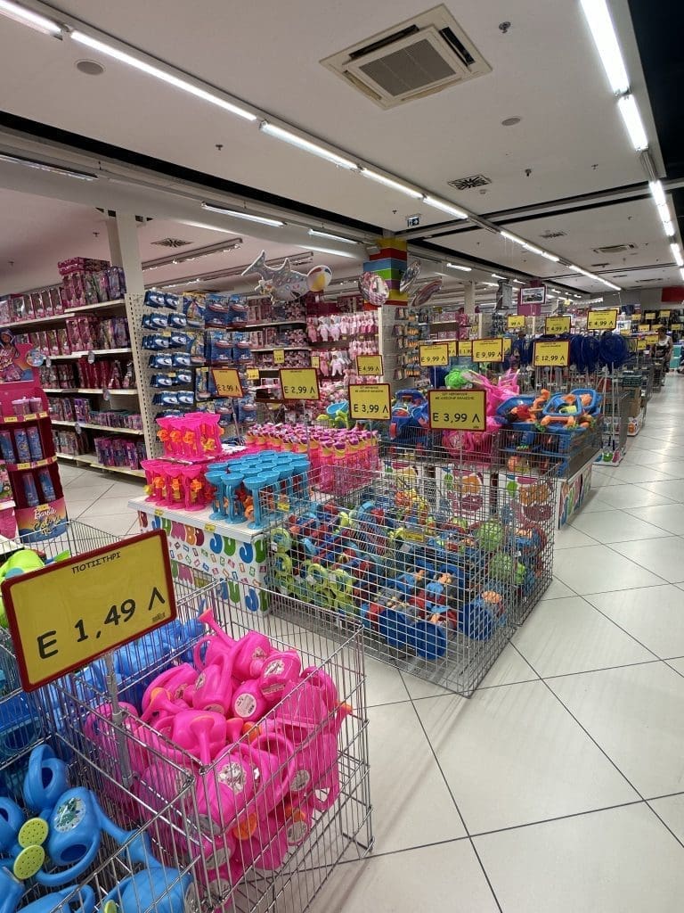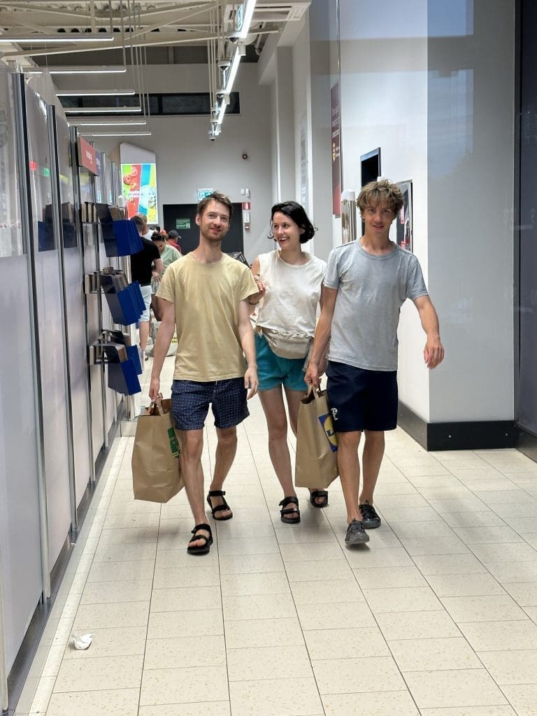 Ich hatte doch keine Ahnung, dass so etwas existiert. Es handelt sich hierbei um eine Art IKEA für Kinderspielzeug, welches man in der oberen Etage findet, so wie die Möbel bei IKEA eben. Im Untergeschoss gibt es dann zusätzlich noch unendliche Gänge mit Kram, durch die man locker 10 Minuten im schnellen Schritt durch muss, um zur Kasse zu kommen. Der Laden ist gigantisch groß, es gibt viele davon, und alle sind von Keller bis zum Dach vollgestopft mit buntem Plastik aus China. Wenn man sich fragt, weswegen der Planet bald für Menschen kaum noch bewohnbar sein wird, findet man hier definitiv einen bedeutenden Teil der Antwort. Wir machen uns mitschuldig, indem wir die Moskitonetze und Befestigungsband kaufen. Da das Konzept funktioniert, tragen wir beim Herauskommen zusätzlich Sitzkissen für das Cockpit, eine Kerze gegen Moskitos und einen Tischhalter für Filips Handy, der in der Tat besser ist, dass alle Provisorien, die er vorher genutzt hatte.