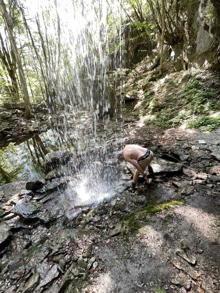 Die Wanderung bringt uns erneut zu sehenswerten Wasserfällen, die hier auch mehr Wasser führen. Geschwommen wird natürlich auch, den Filip ist nicht zu bremsen. Ich halte mal den Kopf darunter.