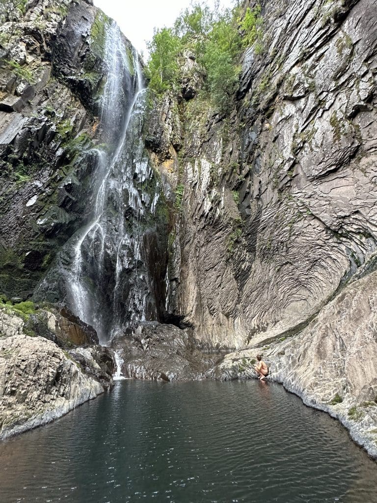 Wir besuchen den letzten malerischen und höchsten Wasserfall auf dieser Tour, in dessen See natürlich erneut geschwommen werden muss…