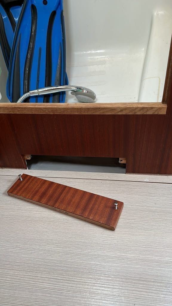 Ich entdecke eine Wartungsklappe unter der Dusche und bin der Siriuswerft dafür unendlich dankbar. So komme ich unter die Dusche und kann das Wasser dort raus feudeln, dass dann auch aufhört, sich durch Ritzen im Boot weiter vorzuarbeiten.