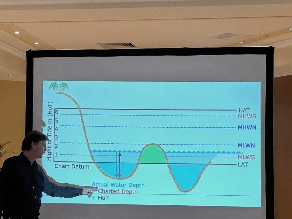 Dieses Jahr war der Theorieteil des Yachtmaster Offshore an der Reihe. Dabei wurden, neben sehr vielen anderen Dingen, vorwiegend die 38 Regeln der Kollisionsverhütungsregeln (KVR, bzw. Convention on the international regulations for preventing collisions at sea (COLREG)), das Navigieren in Tiedengewässern und die Passageplanung besprochen und geübt. Für diese drei war jeweils auch eine Prüfung abzulegen. Insbesondere die Regeln der KVR musste ich allerdings bereits in Mainz so lernen, dass sie beim Kurs weitestgehend sitzen.