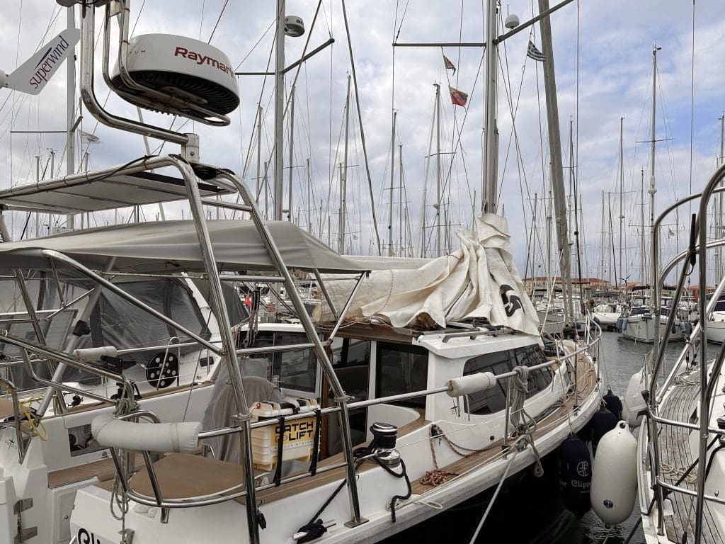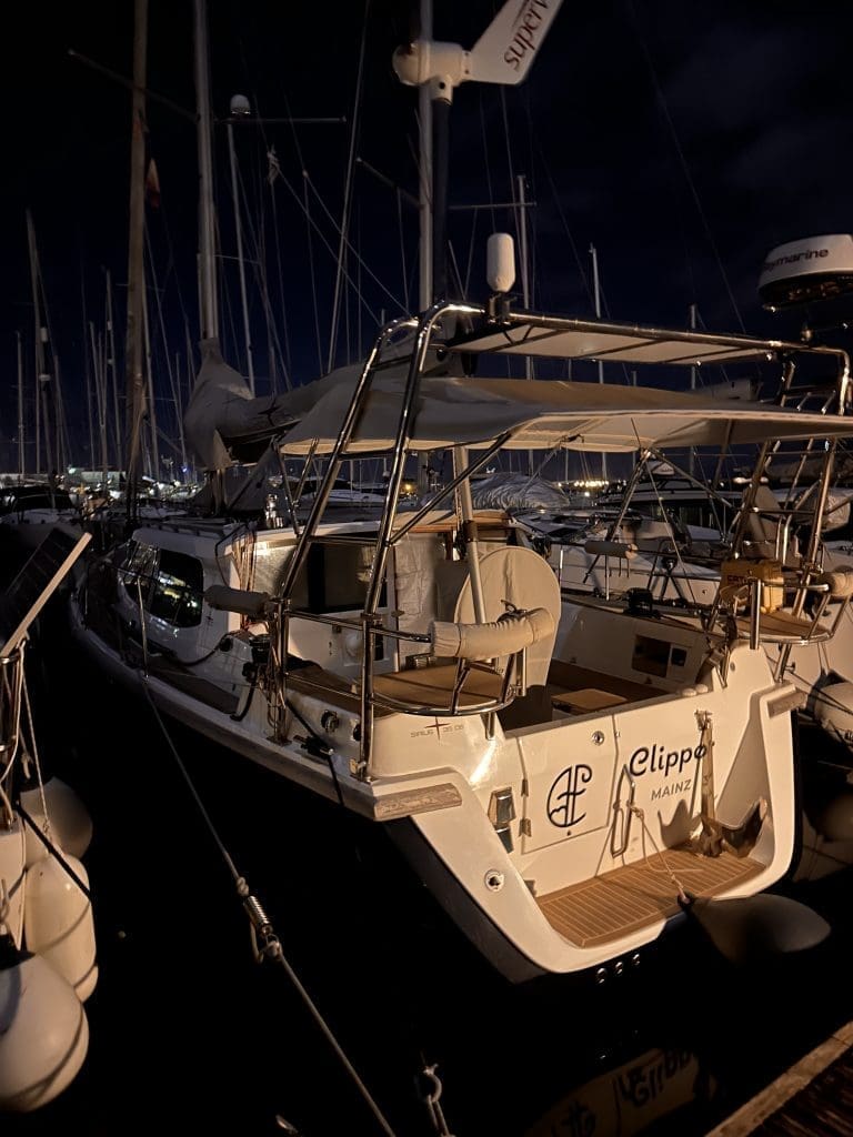 Ich hatte mir vorab ein Hotelzimmer in der Marina genommen, da ich an Bord noch kein Wasser habe, solange Tank und Leitungen noch nicht desinfiziert sind. Das mache ich immer, wenn ich nach langer Abwesenheit wieder zurückkomme. Außerdem weiß ich ja allgemein nicht, was mich erwartet. So lange war der Clipper noch nie allein. Ein paar Tage zuvor gab es hier noch beeindruckend schlechtes Wetter mit Böen in Sturmstärke. Machen konnte ich aus der Entfernung nichts. Um so gespannter bin ich nun, was ich vorfinden werde.