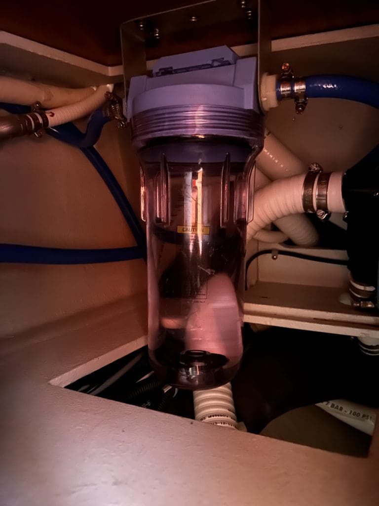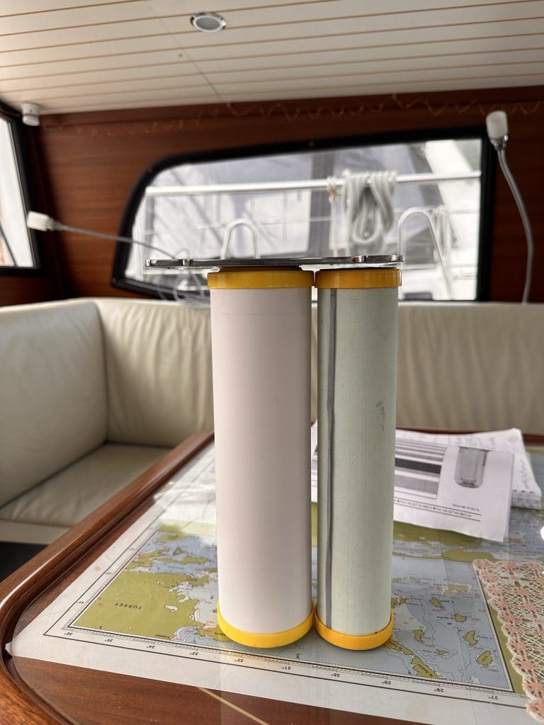 Ich stelle die Pumpe ab, wische das verspritze Wasser vor der Dusche auf und lasse das restliche Wasser erst mal in der Dusche stehen, denn da kommt schon der bestellte Techniker, um mit mir vor Ort meine umfangreiche Liste an Arbeiten durch zu gehen, für die ich gerne Hilfe hätte. Wir reden über den defekten Gasmelder, das Seitenfenstern, dass ich mir mit der Schot des Code Zero bei Sizilien verbogen habe, den Schimmel in der Vorpiek, die Sicherung der Lichtmaschine, die ständig durchbrennt, das neue Antifouling, die Politur des Rumpfs, das defekte Bugstrahlruder, die Reinigung des Schwarzwassertanks und die neuen Schläuche in denselben. Es sind viele Punkte.