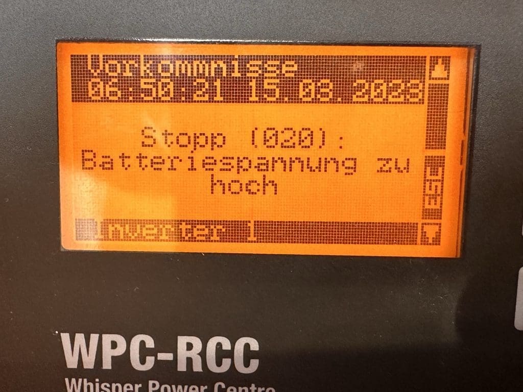 Mein Hochgefühl wird jäh von einem Alarm unterbrochen. Wieder einmal. Dieses Mal ist es aber dringlicher und ich kann ihn sofort zuordnen. Der WPC, die gute Seele für den elektrischen Service-Strom an Bord, beschwert sich erbost und nachhaltig: