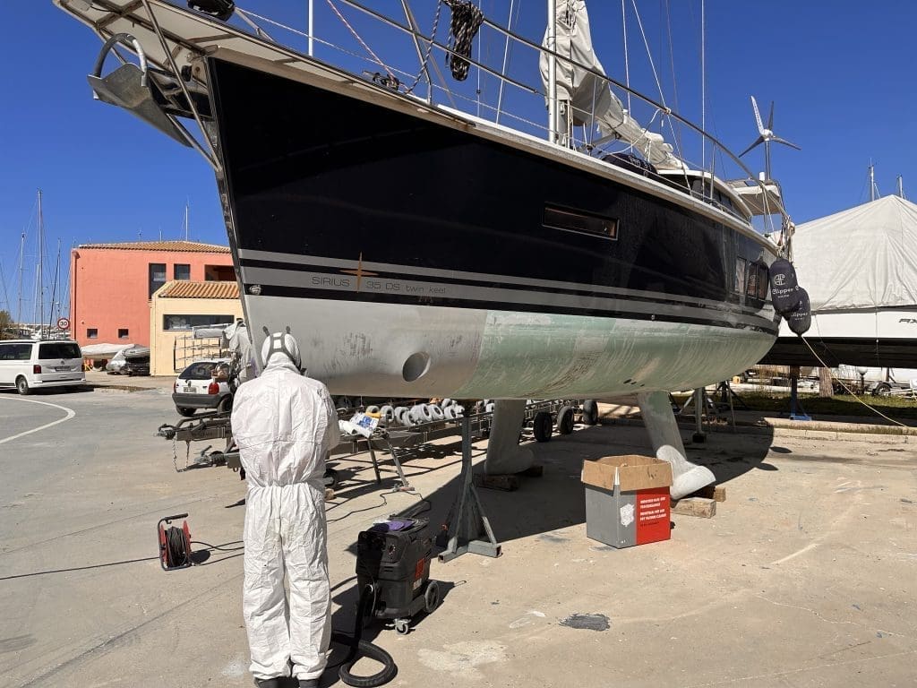 …bevor die neuen Anstriche aufgetragen werden können. Anschließend wird dann noch das GelCode erstmalig nach Auslieferung poliert und das Boot sieht im Anschluss wieder absolut herzeigbar und fast neu aus.