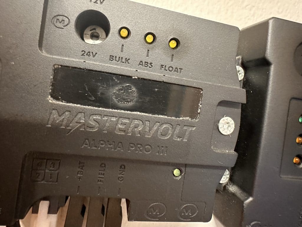 Der nette Elektriker kommt und wir finden einen sichtbar zerstörten Mastervolt Alpha Pro III, der der Laderegler für die Servicebatterien ist.
