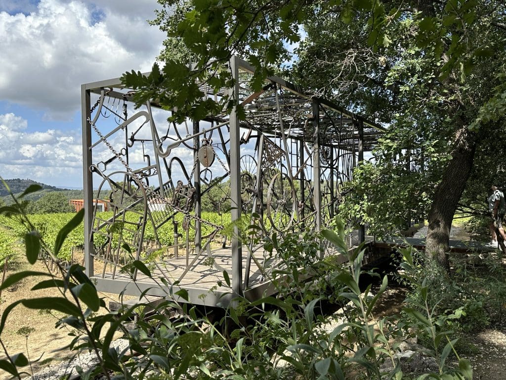 Auf Filips Zettel steht außerdem, neben 2–3 kleineren Museen, deren Beschreibung ich hier überspringe, noch das monumentale Château La Coste, wohin wir natürlich fahren. Dabei handelt es sich um eine Kombination von Luxushotel, Weingut und Freilicht-Kunstmuseum. Filip gefällt es, ich finde es schon zu weit darüber raus, mit so viel teuer hergestellter monumentaler Kunst. Immerhin passt es damit zum Rest der Anlage und einige Dinge sind, ich gebe es zu, beeindruckend.