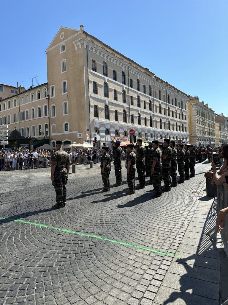 Von irgendwo kommt Musik. Dann rückte die Fremdenlegion mit ihren Képi Blanc bereits wieder ab, nimmt offenbar gar nicht an der Parade teil. Ich betrachte die Typen genauer: Söldner, gekaufte menschliche Kampfmaschinen, von überall auf der Welt. Nicht wenige mit asiatischem Einschlag, die dann den Kopf hinhalten, wenn Frankreich nicht die eignen Söhne und Töchter schicken möchte und das auch regelmäßig tut, ohne dass man viel davon mitbekommt. Gruselig, von welcher Seite man das auch betrachtet.