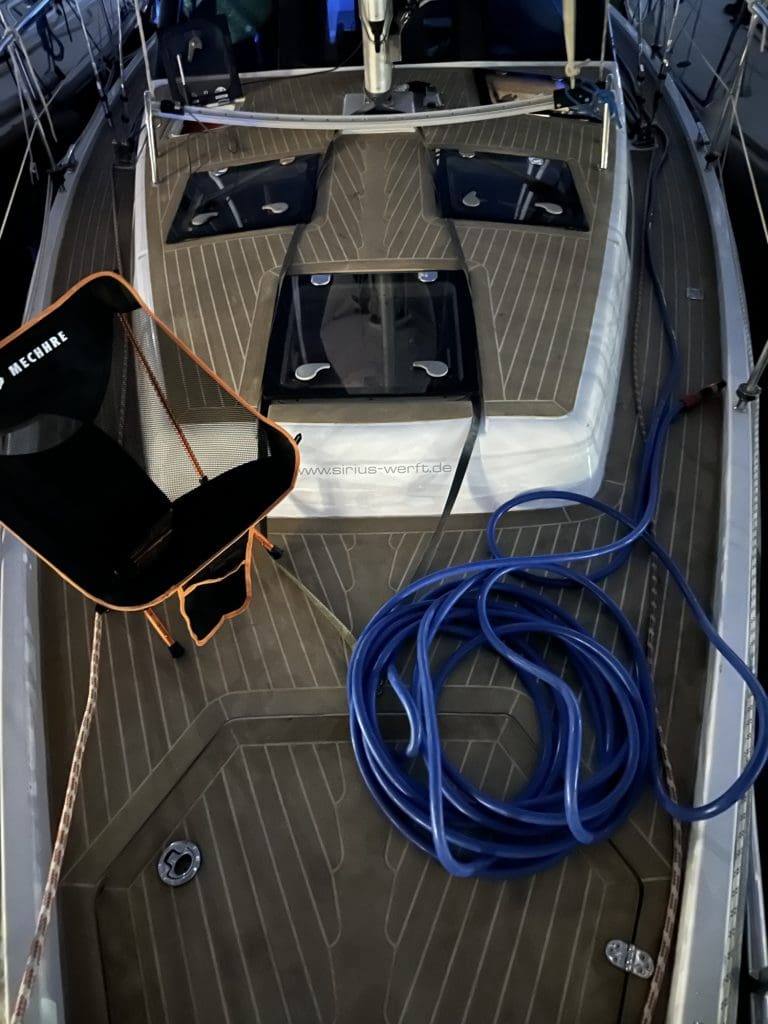Währenddessen sagt mir Gilles von der SY Balena, einer anderen Sirius 35, schon seit Jahren, ich soll das Ding doch einfach kaufen und an Deck stellen. Nun habe ich meine Blockade im Kopf endlich beseitigt und tue genau das! Das Provisorium löst bereits das Problem. Es ist eine unerhörte Erleichterung. Ich stelle die Schüssel einfach aufs Vordeck, führe das Kabel durch die Dachluke provisorisch zum Router, welcher wiederum mit der Steckdose verbunden wird. Die Schüssel richtet sich nach einigem Nachdenken aus und ich habe Breitbandinternet mit wahnsinnigen 150–200 MBit, dem drei bis Vierfachen des DSL in Mainz und keine Sorgen mehr.
