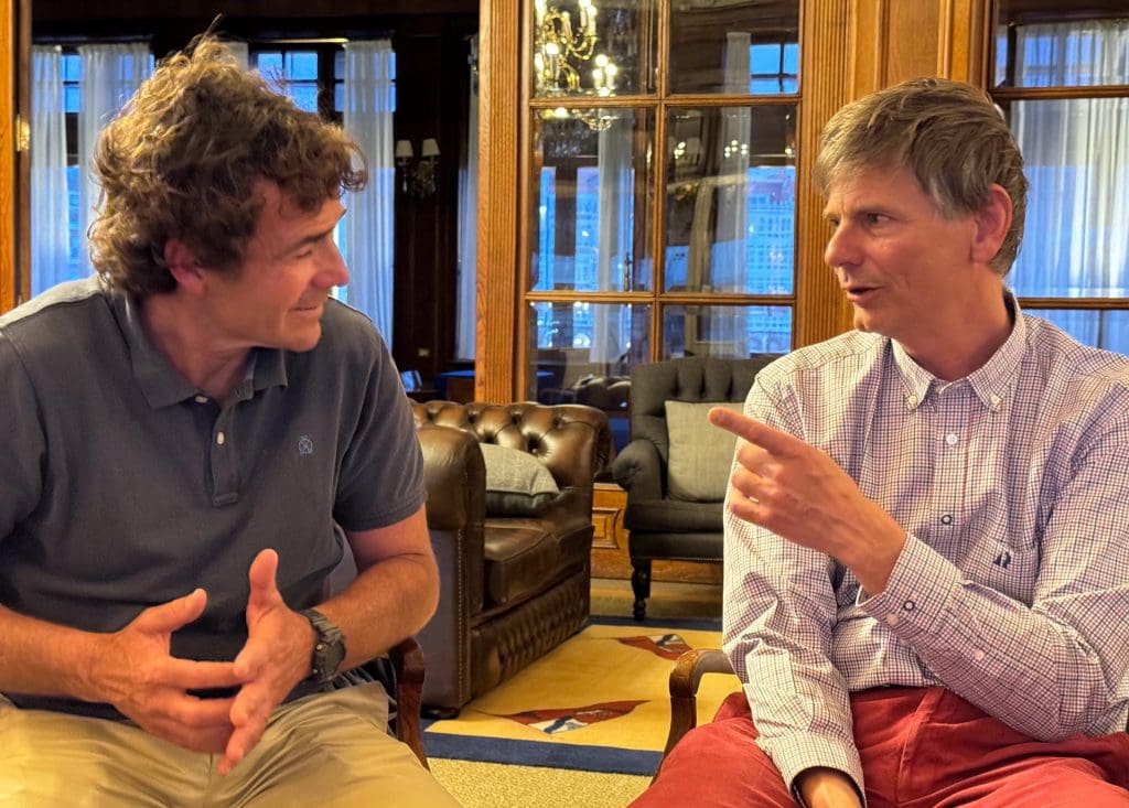 Leon kennt ihn gut und hat sein Boot jeden Winter bei Chuny im Winterlager. Das ist eine Erfahrung für sich. Chuny erzählt, dass er mal einen Kunden hatte, an dessen Masttop er etwas nachsehen wollte. In dieser Liga legt man natürlich keinen Bootsmannstuhl an, sichert sich nicht mit zwei Fallen und lässt sich sicherlich nicht aufwinschen. Chuny klettert nach wie vor einfach so den Mast hoch. Der erstaunte Kunde, nicht ganz im Bilde, wen er vor sich hat, fragt, wie er das denn gemacht hätte. Chuny scherzt in seiner Unschuld, dass er das durch seine Schuhe kann. Am nächsten Tag steht der Kunde mit genau diesen Schuhen, er hatte sie sich am Nachmittag noch gekauft, vor seinem Mast und versucht in der gleichen Weise denselben zu erklimmen. Nachdem ihm das nicht gelingt, beschwert er sich bei Chuny, seine gerade erstandenen Schuhe seien kaputt. Leider ist Chuny’s Reaktion weder in Bild noch Ton überliefert.