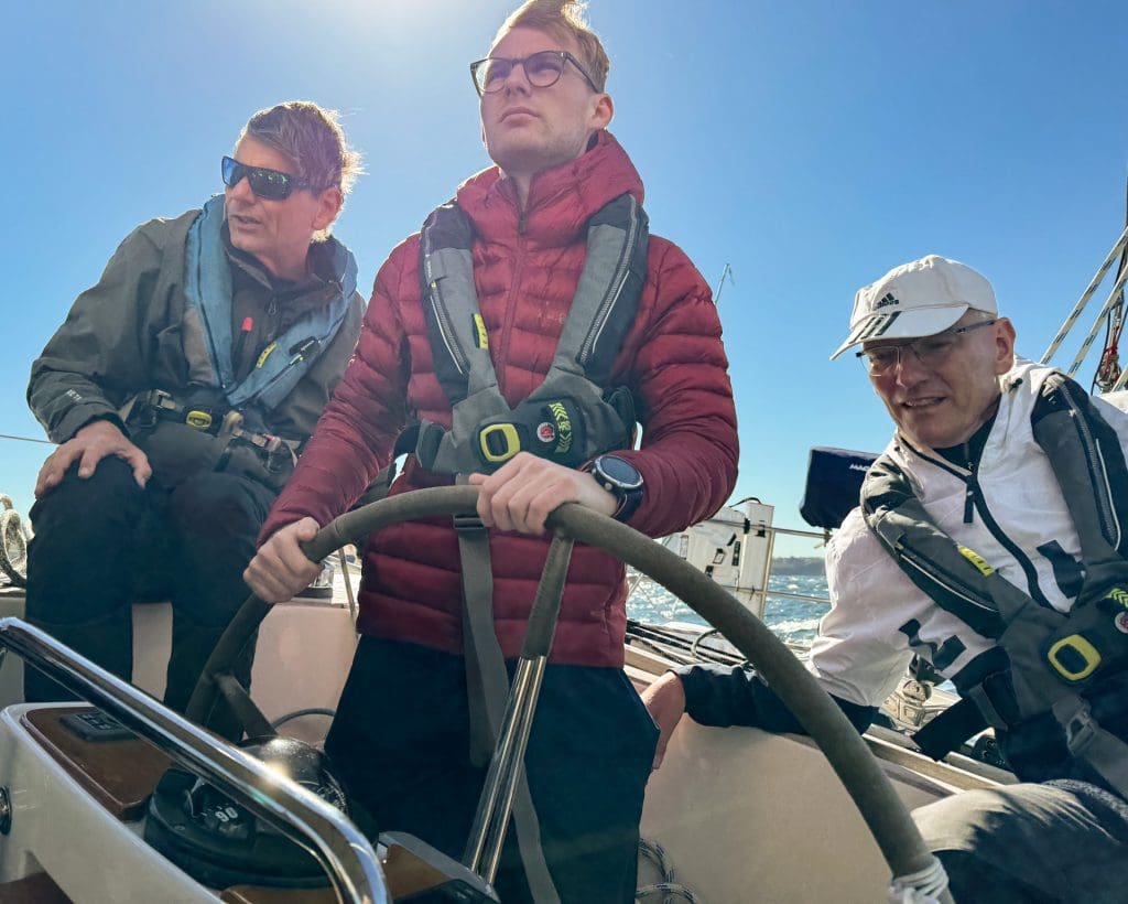 Das gelingt uns, aber aus dem toll geplanten Wachsystem wird zunächst ein Wechsel zwischen Jonathan und mir, während Leon als Skipper im Hintergrund bleibt, die letzte Verantwortung trägt und unser letztes Bollwerk darstellt. Die Linien davor halten aber.