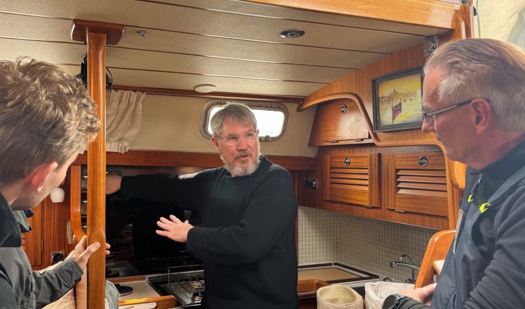 Am darauffolgenden Dienstag packe ich meine Sachen, insbesondere meine Schwerwetterausrüstung, wie Ölzeug, Thermounterwäsche, Seestiefel, was der zweite Grund für den Umweg über Antibes war, nehme den Flieger über Madrid nach A Coruña, wo ich an Bord der Regina Laska gehe. Das Boot ist eine sehr komfortabel und modern eingerichtete Hallberg-Rassy 46 meines Freundes Leon. Neben gefühlt 30 anderen segelbezogenen Tätigkeiten betreibt er als RYA Instructor zwei Ausbildungsstandorte für die Britische Royal Yachting Association, ist Autor von sehr lesenswerten Artikeln in der Yacht und einiger Bücher. So auch dem Praxisguide Fahrtensegeln, meiner theoretischen Grundlage für die kommenden Tage. Zweck der Fahrt ist es nämlich zusammen mit Leons Sohn Jonathan, sowie dem Briten Nick und dem deutschen Frank nach England in den Solent zu segeln, um dort gemeinsam intensiv für das Yachtmaster Offshore Examen zu trainieren, dem wir uns dann am Ende der 10-tägigen Reise für zwei Tage stellen wollen. Ich bereite mich darauf im Prinzip seit Anfang 2023 vor, unter anderem auf seinen Theoriekursen auf Malta.