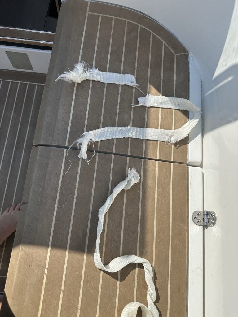 Zurück auf das Boot finde ich eine aufgegangene Landleine vor. Ich hatte zwei Leinen mit einem normalen Kreuzknoten verbunden, der sich aber durch die fortlaufende Be- und Entlastung löste. Sicherlich kein perfekter Knoten für die Verbindung zweier Leinen, die nicht ständig auf Zug sind. Auf der Suche nach einer Alternative finde ich den sehr interessanten Zeppelinstek, den ich mir antrainiere und dann auf meine beiden Leinen anwende. Das wird halten!