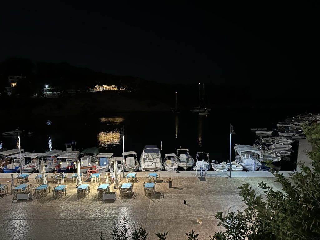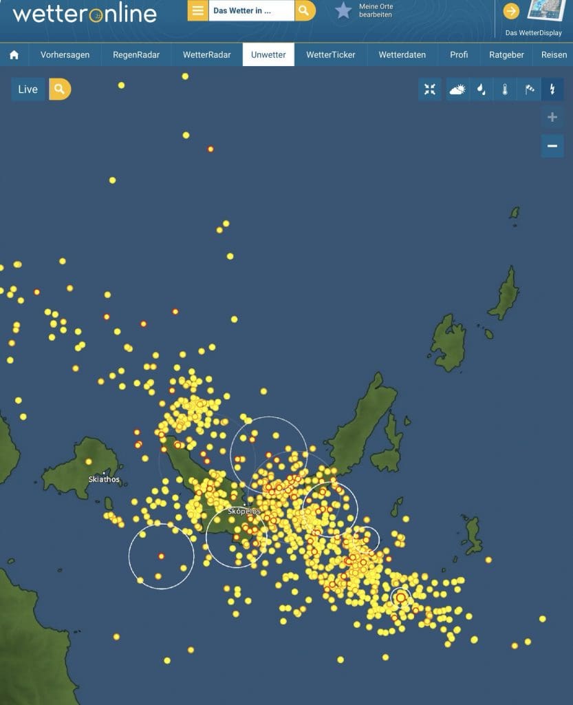 Wir liegen hier im Moment jedenfalls sicher, bewegen uns vorläufig nicht vom Fleck und stellen den Provider wieder auf Vodafone um, da COSMOTE erneut Schwierigkeiten mit dem Internet hat. Vermutlich hat einer der vielen Blitze eine für uns wichtige Antenne zerstört.