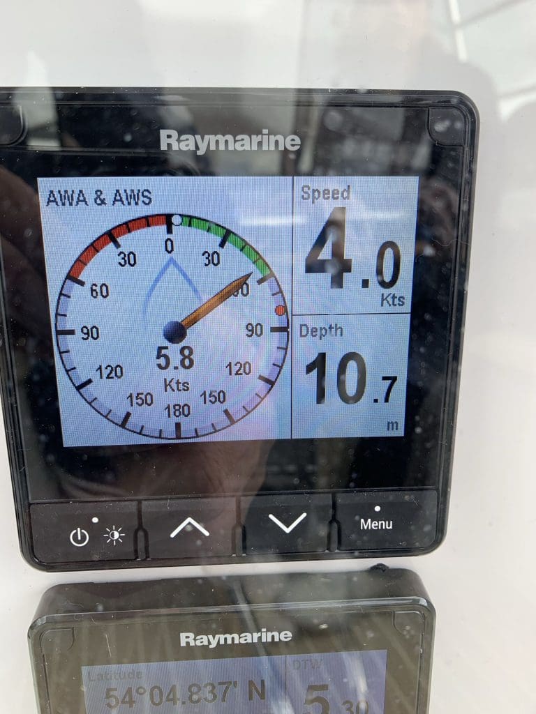 Eigentlich gab es heute kein richtigen Wind, aber mit dem Code Zero (das größte an Bord befindliche Vorsegel) hatten wir bei 6 Knoten scheinbarem Wind immerhin 4 Knoten durchs Wasser. Wahnsinn!