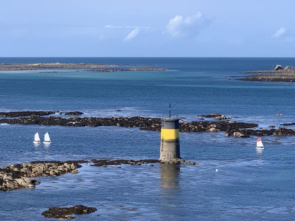 Es soll nun weitergehen, der Wind hat sich beruhigt. Wir schaffen es nicht, in einem Stück um die westlichste Ecke der Bretagne, die Ile d‘Ouessant zu kommen, ohne unverhältnismäßige Motorengewalt einzusetzen. Also lassen wir es entspannter angehen und setzen uns ein kleines Zwischenziel: L‘aber-Wrach, ein Kaff ohne irgend eine Besonderheit, bis auf den Umstand, dass es eine kleine Marina gibt, die zu jeder Tide angelaufen werden kann und eine günstige Absprungbasis ist, um mit einer Tide morgen um die Ecke der Bretagne zu kommen. Wir werden entspannt kurz nach Mittag aufbrechen…..