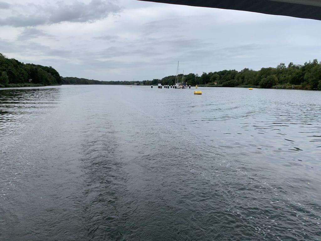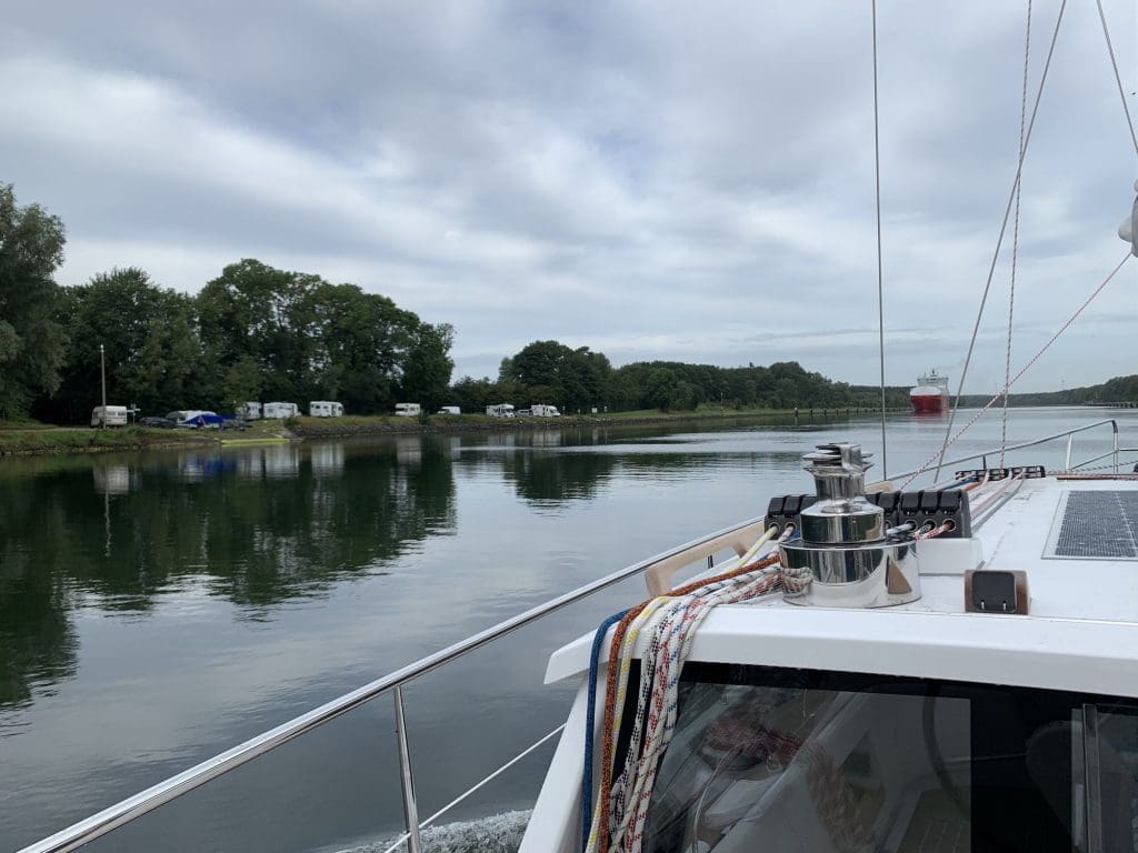 Die Kanalfahrt war eintönig, wie erwartet. Abgesehen von den großen Mitfahrern und Entgegenkommern bestand die Herausforderung darin, die Konzentration für 10 Stunde zu halten, zu Essen, aufs Töpfchen zu gehen und am Ende noch einen brauchbaren Anleger zu fahren, der erneut ohne Bruch und mit Hilfe von Land glückte.