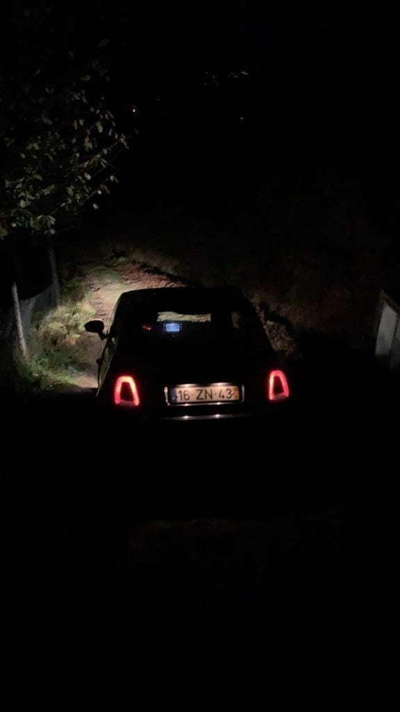 Wir bleiben stehen. Ich versuche rückwärts wieder den Berg hochzukommen und quälte die Kupplung, bis es raucht, während Filip voraus mit der Taschenlampe den weiteren Weg erkundet. Ich schaffe es fast zurück bis zum befestigten Teil der Straße, aber die letzten Meter sind zu steil, die Räder drehen nur noch durch. Ich steige aus, untersuchte den restlichen Teil der Straße und das kleine Auto kann sich nicht mehr halten, rutscht unbesetzt mit offener Tür den Weg wieder halb hinab. Mir bleibt das Herz stehen, während ich dem rutschenden Fiat hinterherschaue. Das Gefährt nimmt gutmütig eine kleine Kurve und landet in einem Zaun. Wenigstens steht er wieder. Ich setzte ihn zurück auf den Weg, begutachte die fetten Schrammen in dem neuen Auto und beschließe, dass hier nun Ende ist.