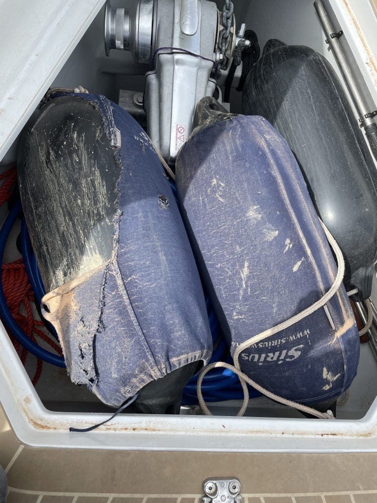 Die geschundenen und verschlammten Fender landen in ihren Verstecken, das Boot ist seeklar und wir verlassen den Hafen mit unbekanntem Ziel, soweit uns der Wind eben trägt. Wir kreuzen zunächst bei moderatem 11–12 Knoten Wind aus der Landabdeckung. Ich halte mich weiter südlich, um in das große Windfeld zu kommen, dass uns dann wie auf einem Laufband zügig hier herausbringen soll. Am frühen Abend frischt es tatsächlich immer weiter auf, geht aber über 15 Knoten nicht hinaus. So moderat fahren wir durch die Nacht. Um kurz vor 1 Uhr hole ich das Groß ein und fahre bei 20 Knoten Wind jetzt nur noch mit der Genua weiter, was uns zufriedenstellende 5 Knoten Fahrt beschert. Ich gehe zunächst auf 20 Minuten Schlaf-Intervalle, die ich später auf 30 Minuten ausdehne.