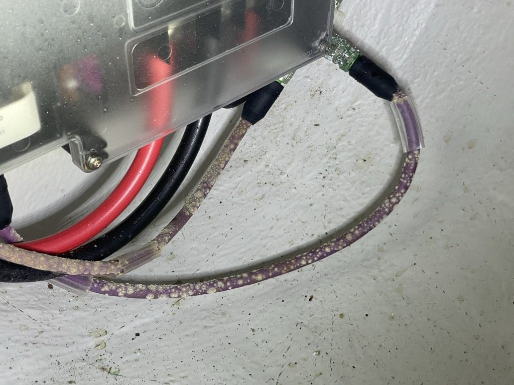 Leider ist die Ursache nicht offensichtlich. Was ich aber finde, ist starke Korrosion an den ganz vorn verbauten Steckern, während die Kabel angeschimmelt sind. Das kann so sicherlich nicht bleiben. Mal sehen, wie ich damit am besten umgehe.