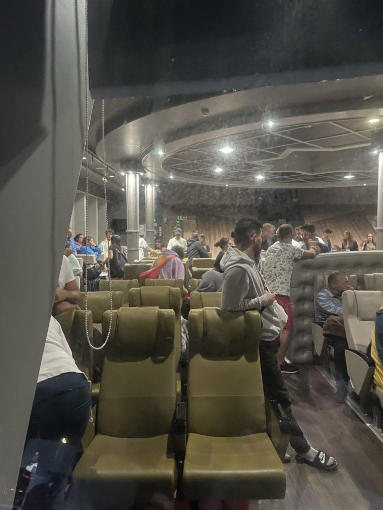 Bei der Buchung gab es zur Auswahl Deckpassage und für stolze zweihundert Euro mehr eine Zweierkabine. Filip einigte sich mit mir auf die Deckpassage und ich beruhige mich in der Annahme, dass wir sicherlich dann über Nacht eine Art von bequemem Sitz mit zurück klappbarer Lehne in Anspruch nehmen können, ähnlich wie in Nachtzügen der Unterschied zwischen Schlafwagenabteil und Sitz gemacht wird.