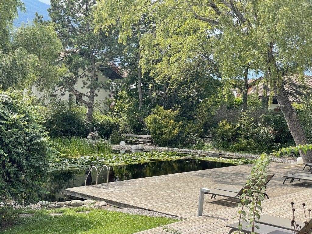 Es vergehen 5 Tage tolle Tage in diesem komplett veganen Hotel, in dem morgens ein entsprechendes Frühstücksbuffet dasteht, dass man gar nicht aufhören möchte. Am Abend aber wird dann jeden Tag nach unseren 2–3 Gängen in der Sauna und dem anschließenden kalten Bad im Gartenteich …