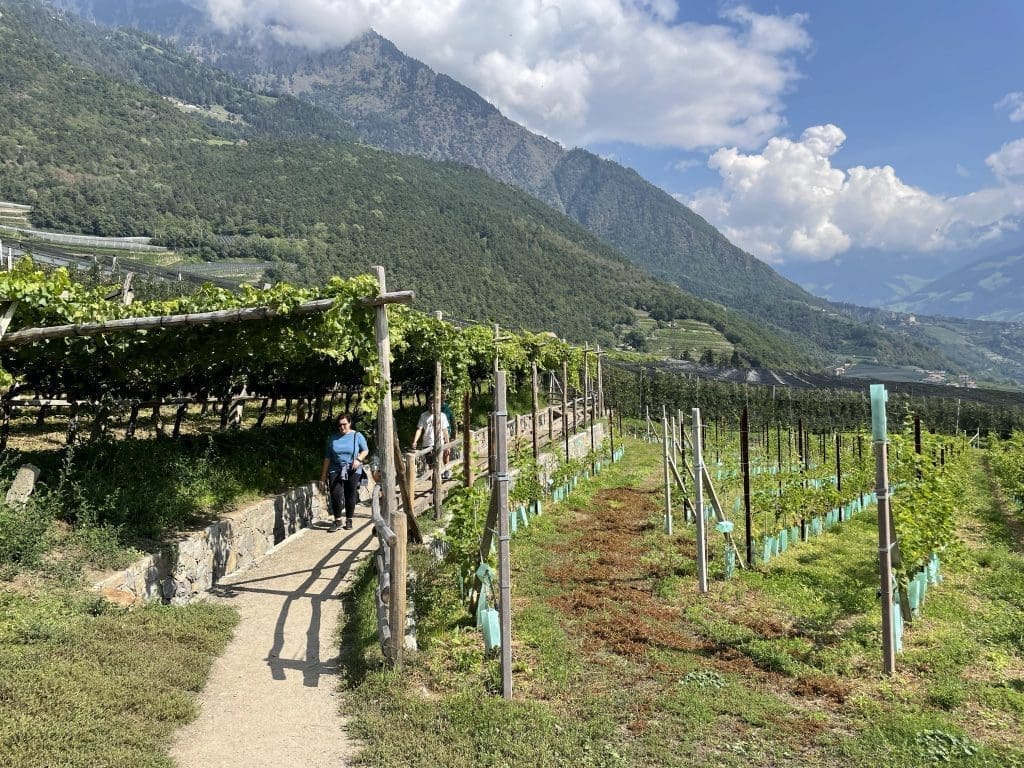 Dass Meran natürlich ein toller Ort ist, ist ja weitläufig bekannt. Die Apfel- und Weinernte steht kurz bevor. Wir wandern buchstäblich unter Weintrauben von Naturns nach Meran.